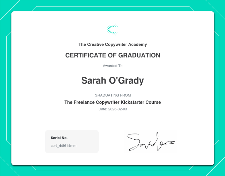 As you can see, I make it a priority to continually upskill and learn everything I can about the latest in copywriting knowledge.